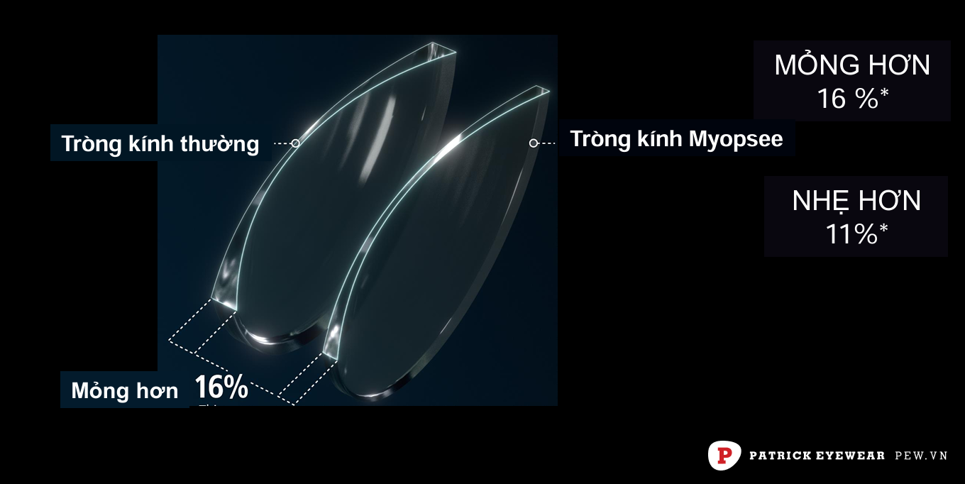 Cấu trúc phi cầu kép giúp phân bố độ dày hợp lý, giảm độ dày đáng kể so với tròng thường – đặc biệt ở độ cận cao, tạo nên vẻ ngoài thanh mảnh và gọn gàng hơn mà vẫn đảm bảo độ bền.